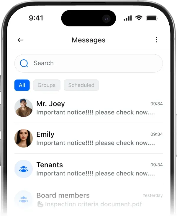 Create groups for targeted communication (e.g., members, board members, maintenance personnel).