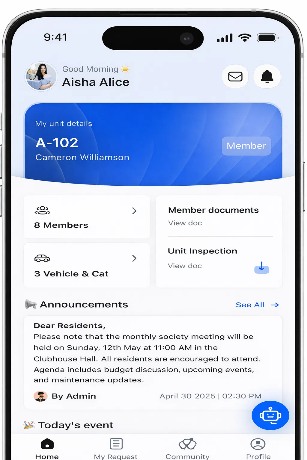 Track and manage all maintenance request from members.